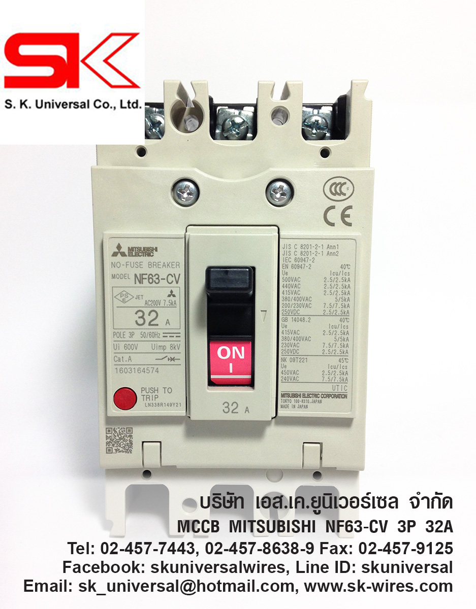 เบรกเกอร์ MCCB รุ่น NF63-CV 3P 32A MITSUBISHI