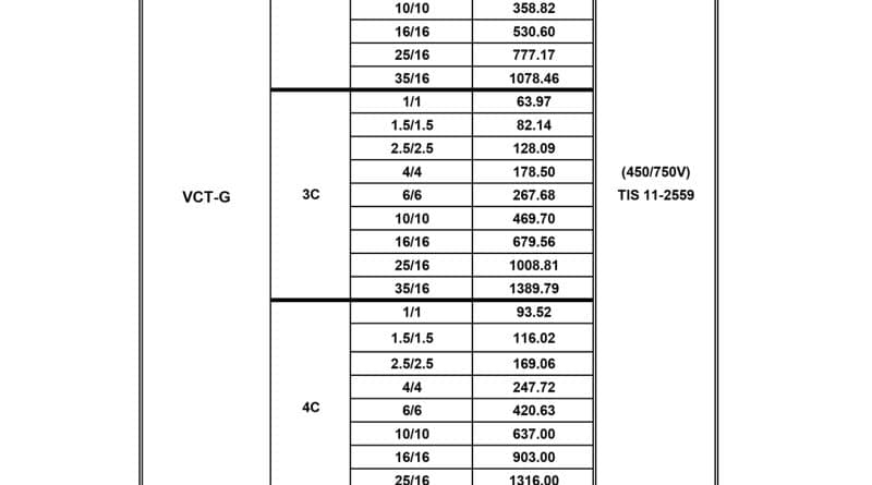 Read Moreราคาตั้ง สายไฟ VCT-G Thai Yazaki (Price List) สายไฟ VCT-G ไทยยาซากิ สายอ่อน กลมดำ คุณภาพสูง ราคาถูก โทร: 02-457-8639 จำหน่ายสายไฟ VCT-G ราคาลดพิเศษ